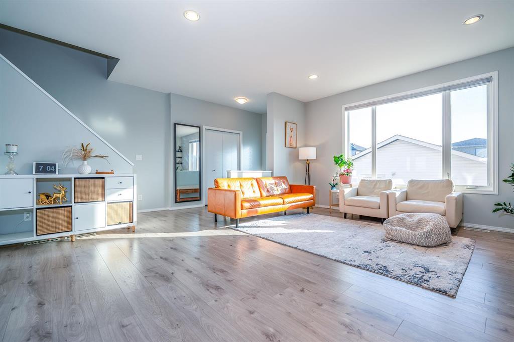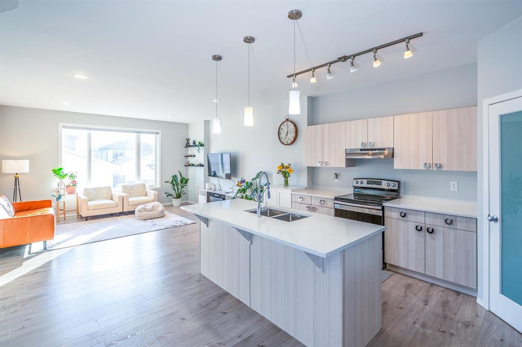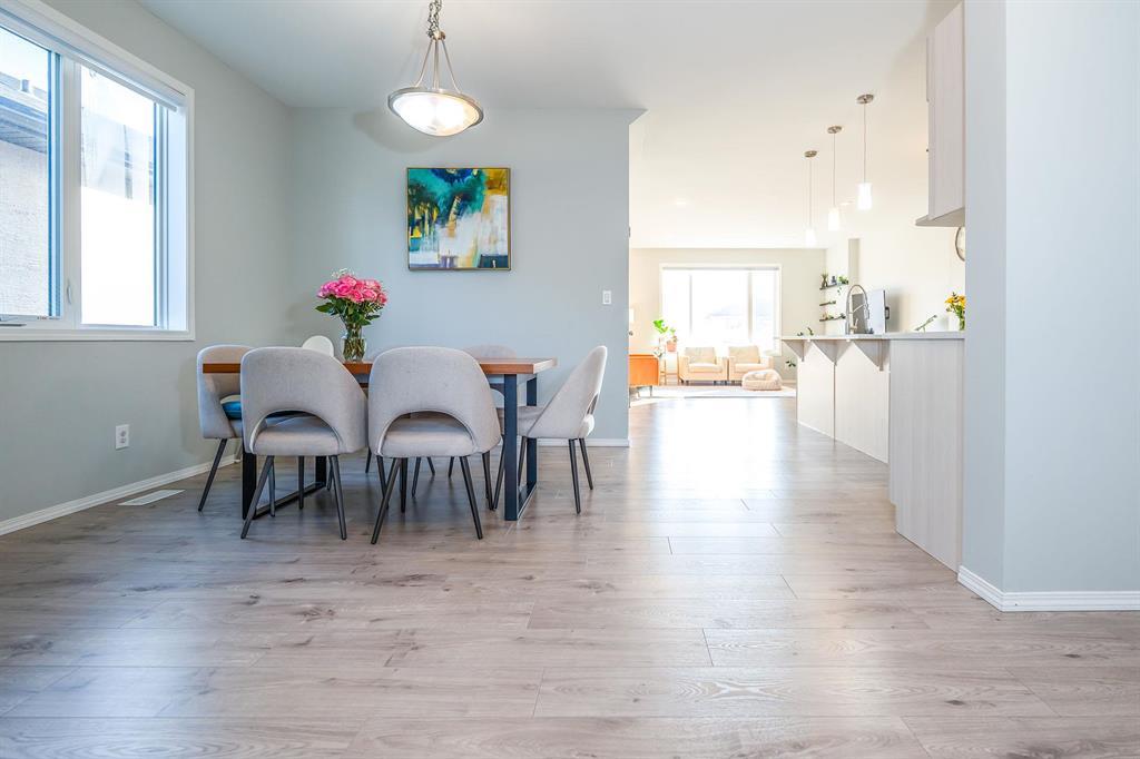Welcome to 196 Cherrywood Rd, a rare 1,917 SQFT two-storey home in the desirable Bridgwater Trails community. This spacious residence offers 6 bedrooms, 4.5 bathrooms, and an oversized 22x20 garage, perfect for large families or multi-generational living. The main floor features 9 ft ceilings, a bright and spacious den ideal for a home office with a large window, and an open-concept kitchen equipped with stainless steel appliances, a large quartz island, and new flooring throughout. The living room is filled with natural light from massive windows, creating a warm and inviting atmosphere. Upstairs, the primary suite is a private retreat with elegant French doors, a 3-piece ensuite, and a walk-in closet. Three additional generously sized bedrooms and a full bathroom complete the second floor. The professionally finished basement adds two more bedrooms, each with its own ensuite bathroom, offering versatile space for guests or extended family. Located just steps from Bridgwater Trails Park and close to schools, shopping, and transit, this home combines comfort and convenience. Don t miss out schedule your private showing today!
