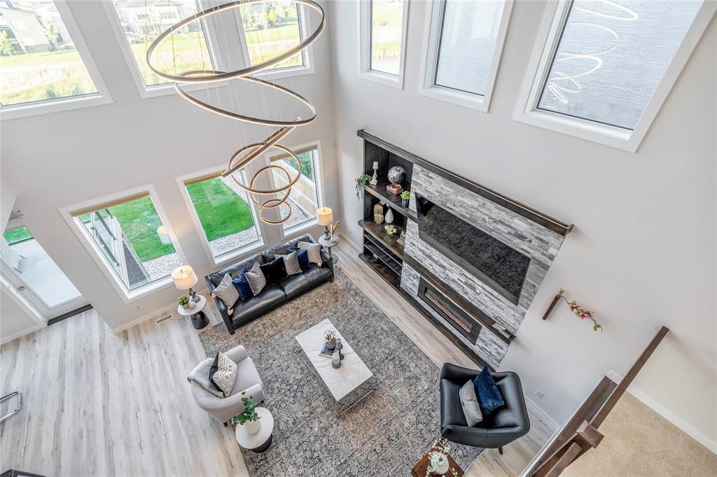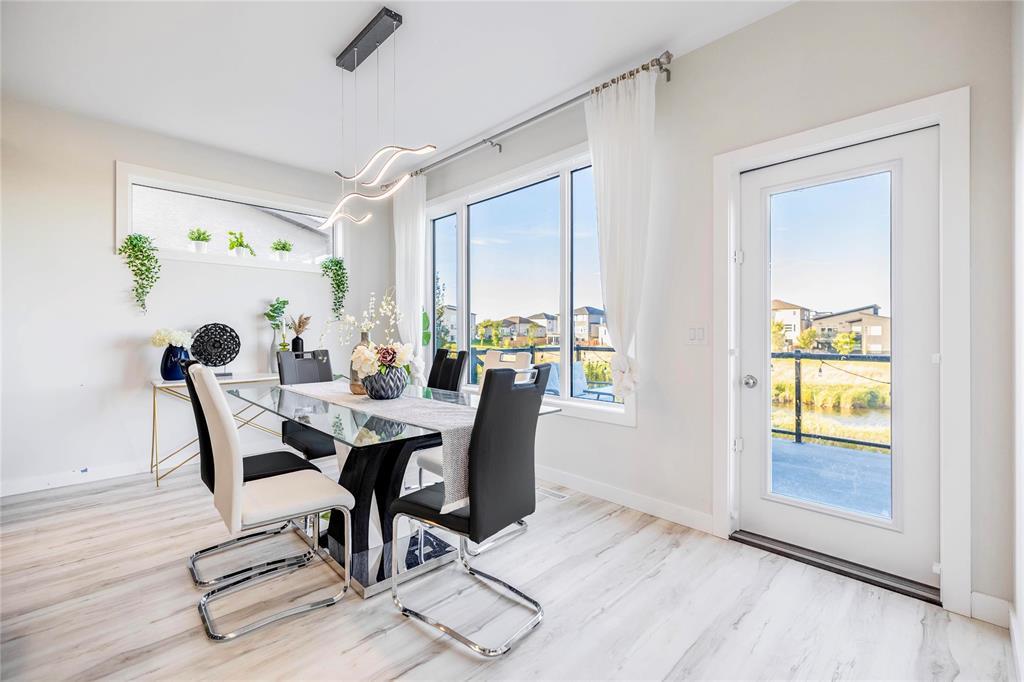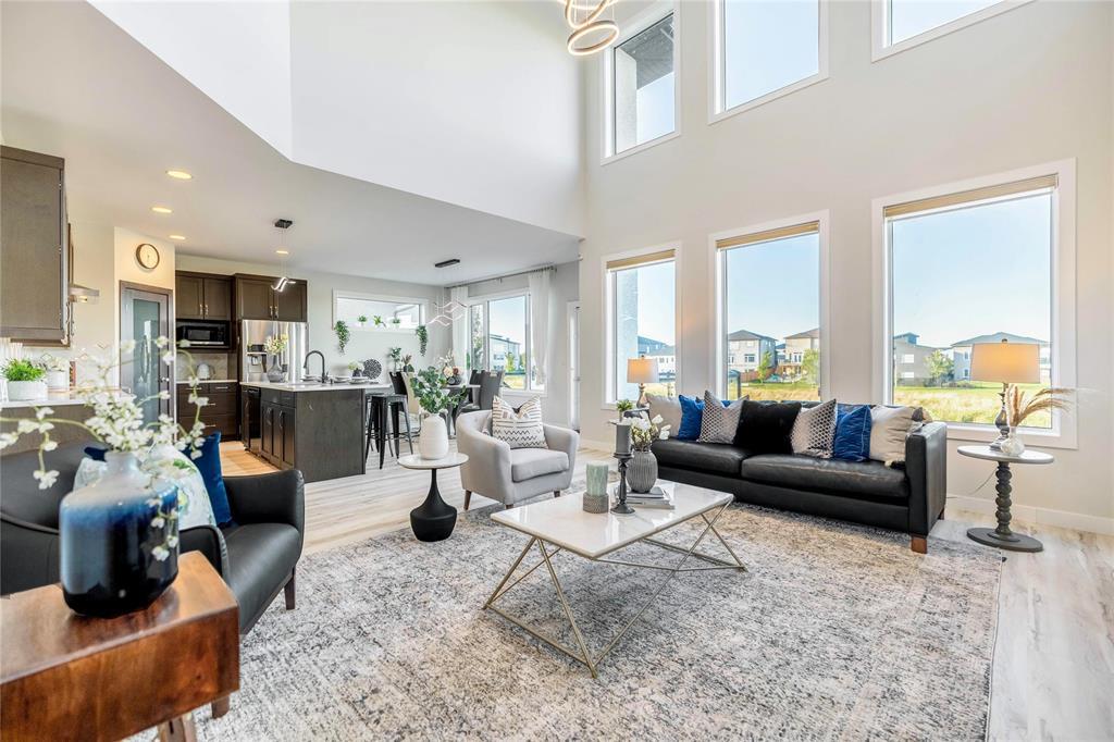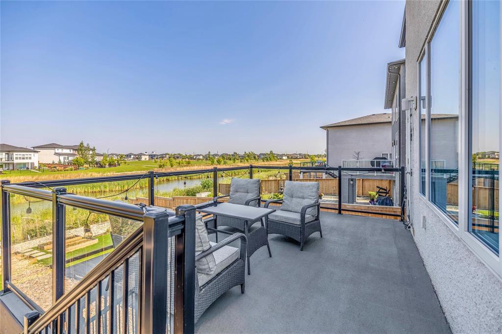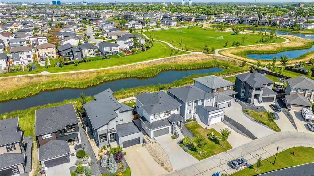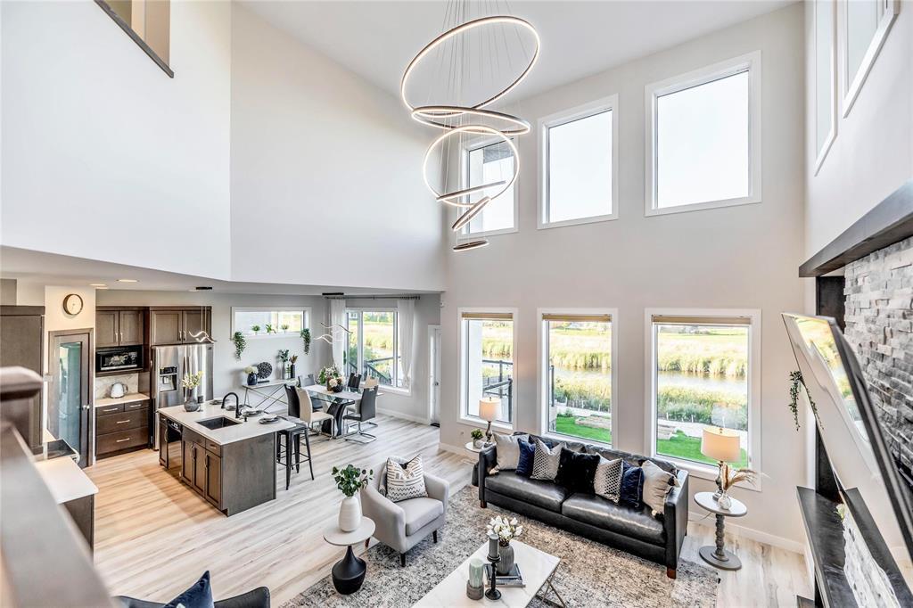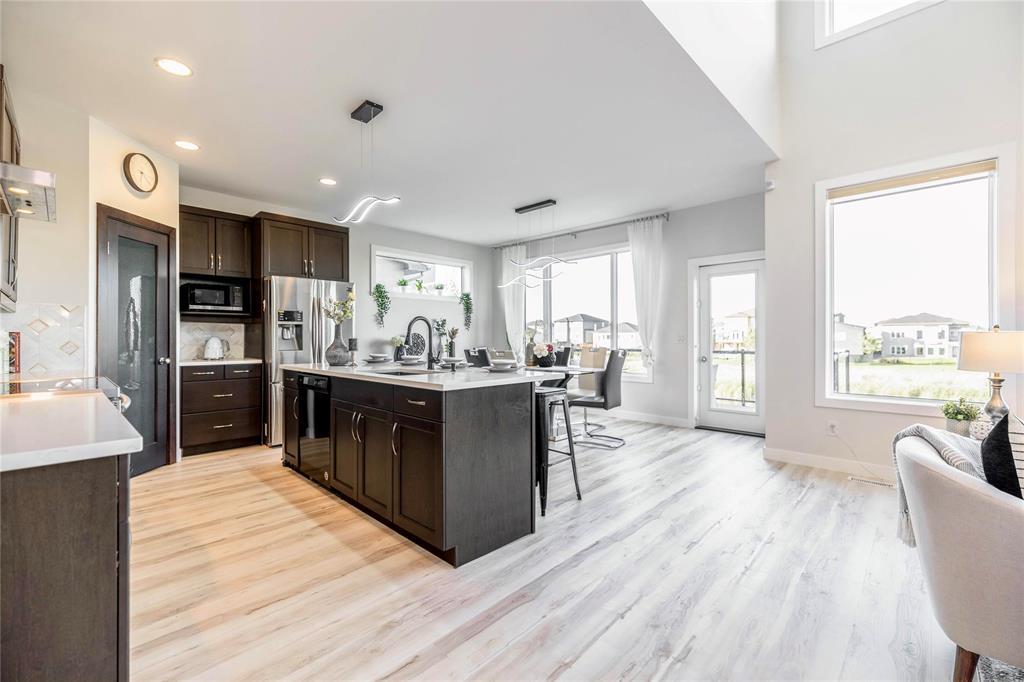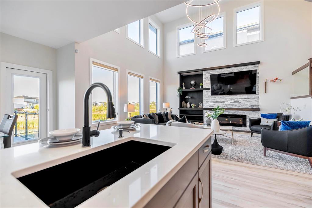 Welcome to this stunning two-storey walkout home located in the highly desirable South Pointe. Featuring 5 spacious bedrooms and 3.5 bathrooms with many upgrades. The main floor impresses with 18-foot ceilings in the great room, large windows that flood the space with natural light, and a cozy fireplace that adds warmth and charm. The modern kitchen is a chef s dream, with quartz countertops, maple cabinets, stylish backsplash, walk-in pantry, and luxury vinyl plank flooring throughout. A bright dining area opens to a large deck with serene lake views, perfect for relaxing or entertaining. The main floor also includes a functional den, ideal for a home office or study. Upstairs offers four generously sized bedrooms, including a luxurious primary suite with a walk-in closet and delux ensuite featuring double sinks, soaker tub, glass tiled shower, and tile flooring. The fully finished walkout basement includes a spacious rec-room, an additional bedroom, a full bathroom, and wet bar, ideal for entertaining or guests. Walking distance to school, close to parks, shopping and more. A rare opportunity not to be missed, book your showing today!
