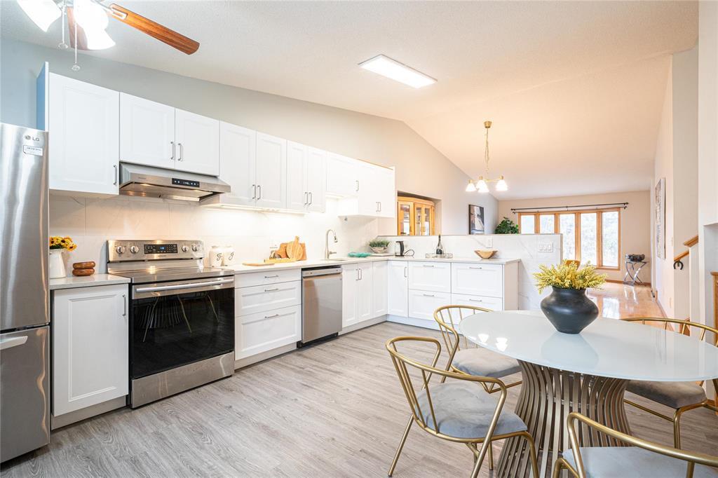 Welcome to this beautifully maintained 1771 sqft. 4-level split in desirable Richmond West! This spacious home offers 4 Bedrooms, 3 Full Bathrooms, and a finished basement, perfect for growing families. Features include hardwood and laminate flooring, vaulted ceilings, triple-pane windows, tons of cabinetry, and a cozy family room with a gas fireplace. Patio doors lead to a lovely deck, ideal for relaxing or entertaining. Recent upgrades include a REMODELLED KITCHEN (2020), fridge and dishwasher (2020), sump pump (2024), furnace (2019). Conveniently located close to bus routes, shopping, the University of Manitoba, and within WALKING DISTANCE to Bairdmore School. Book your showing today!
