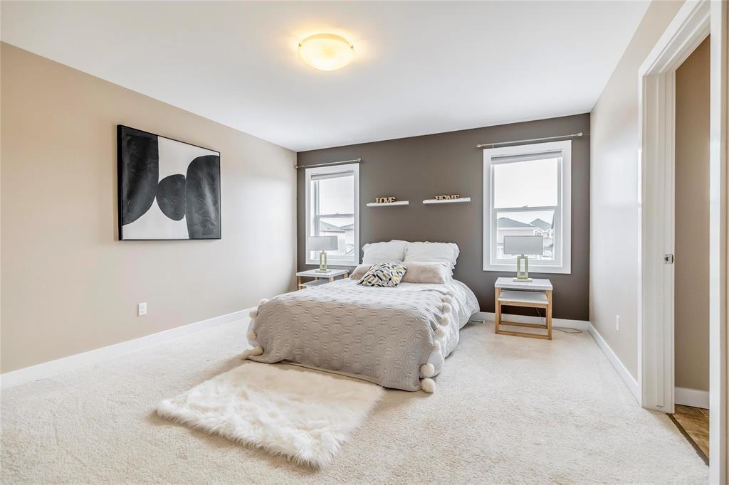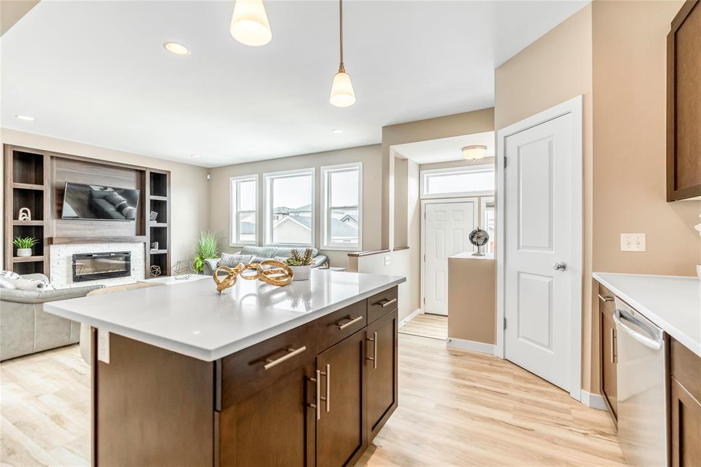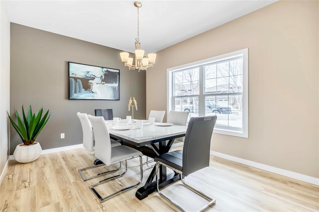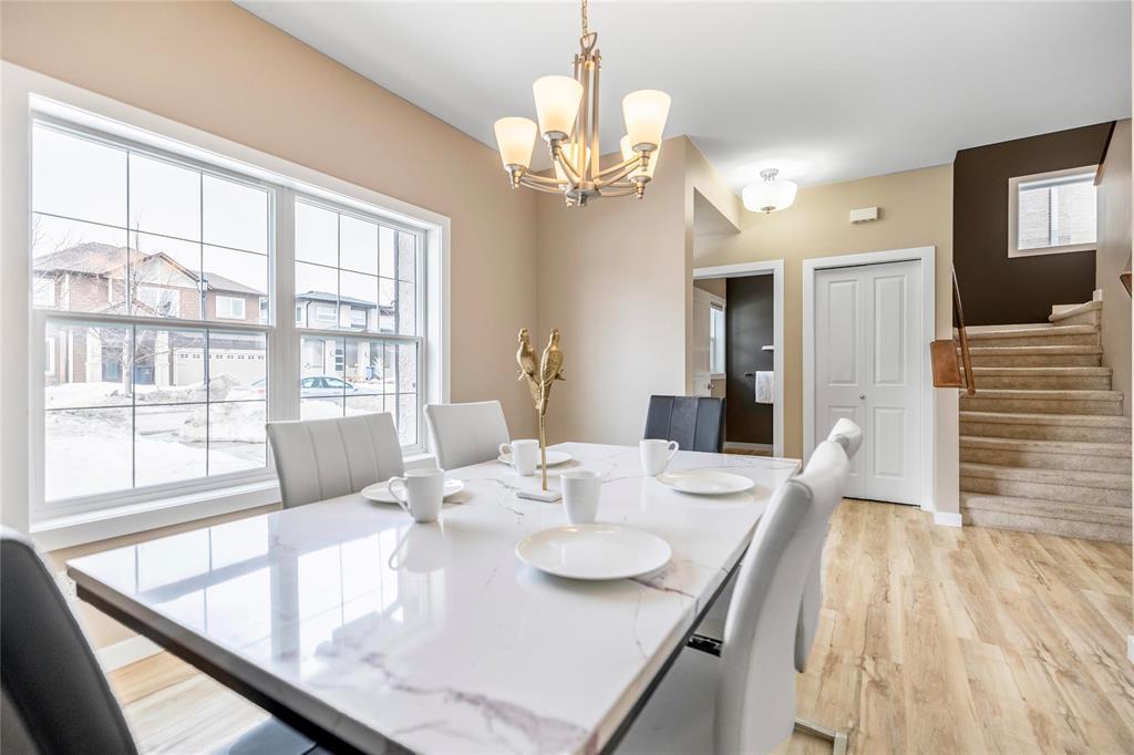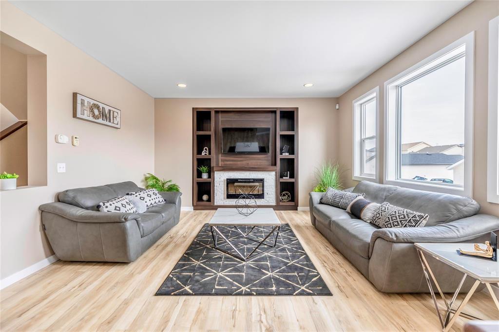 Welcome to this fantastic 1638sf Bridgwater Lakes 2 storey home. Walk in and immediately you are immersed in loads of natural light. New Vinyl plank flooring throughout the main floor. Spacious formal dining room with big windows. Open concept of a great room & kitchen makes entertaining easy! Great room is highlighted by a built-in entertainment unit with electric fireplace w/stone detailing, art niches & wall-mounted TV. Island Kitchen features quartz counter tops, subway tile back splash, breakfast bar, plenty of cabinetry & access to a fenced backyard. Upper level with 4-piece bath & 3 bedrooms w/master suite including a 4-piece ensuite & walk-in closet. Fully finished basement features a bedroom, a full bathroom. recreation room, a laundry room & utility room. New interior painting, outdoor interlocking stone patio & wood deck, double detached garage, extra parking pad. Great location, close to the water fountain, Bridgwater center, shopping, new schools, future community center & U of M.