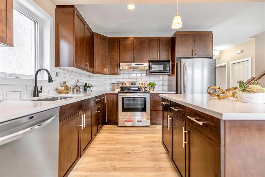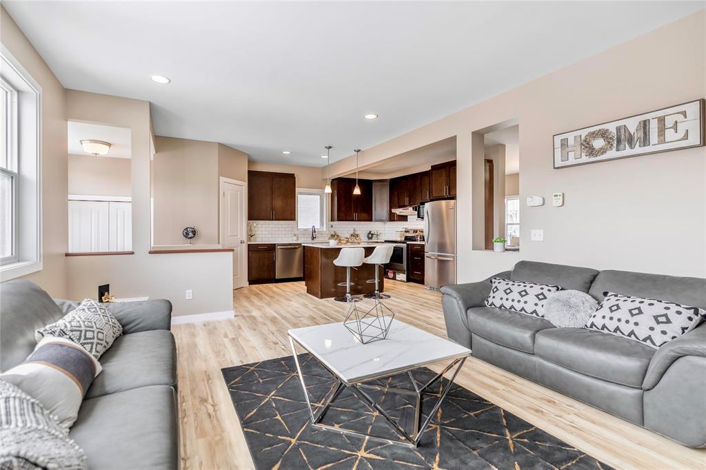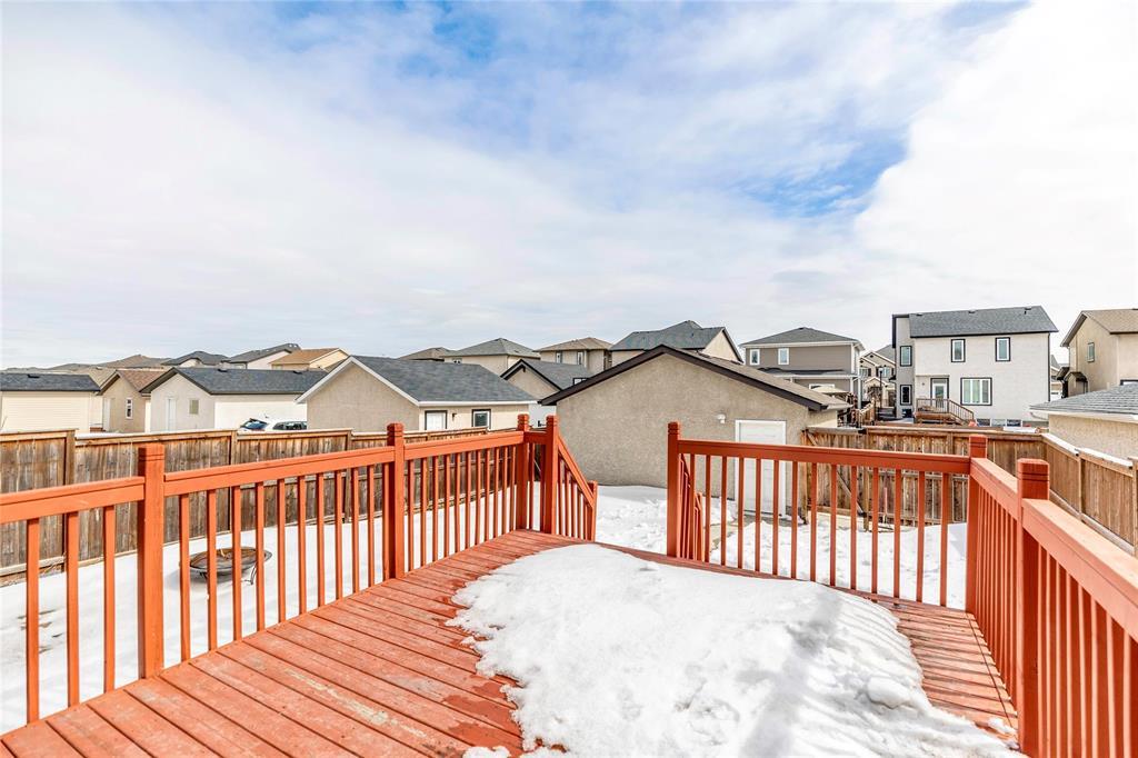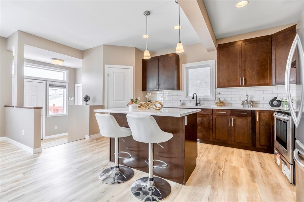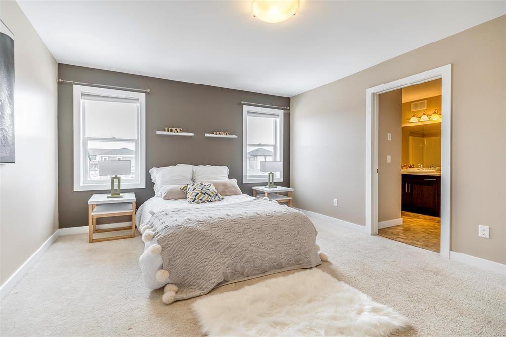 Welcome to this fantastic 1638sf Bridgwater Lakes 2 storey home. Walk in and immediately you are immersed in loads of natural light. New Vinyl plank flooring throughout the main floor. Spacious formal dining room with big windows. Open concept of a great room & kitchen makes entertaining easy! Great room is highlighted by a built-in entertainment unit with electric fireplace w/stone detailing, art niches & wall-mounted TV. Island Kitchen features quartz counter tops, subway tile back splash, breakfast bar, plenty of cabinetry & access to a fenced backyard. Upper level with 4-piece bath & 3 bedrooms w/master suite including a 4-piece ensuite & walk-in closet. Fully finished basement features a bedroom, a full bathroom. recreation room, a laundry room & utility room. New interior painting, outdoor interlocking stone patio & wood deck, double detached garage, extra parking pad. Great location, close to the water fountain, Bridgwater center, shopping, new schools, future community center & U of M.