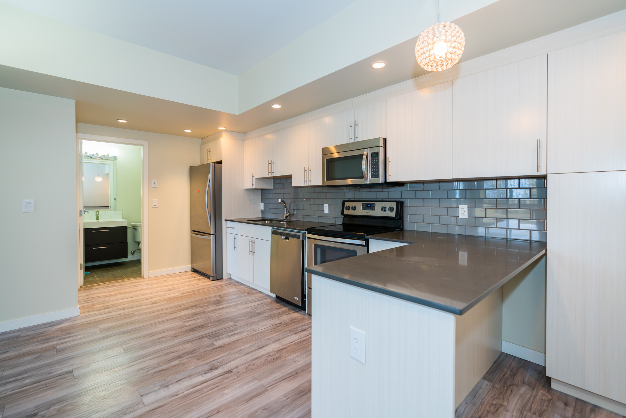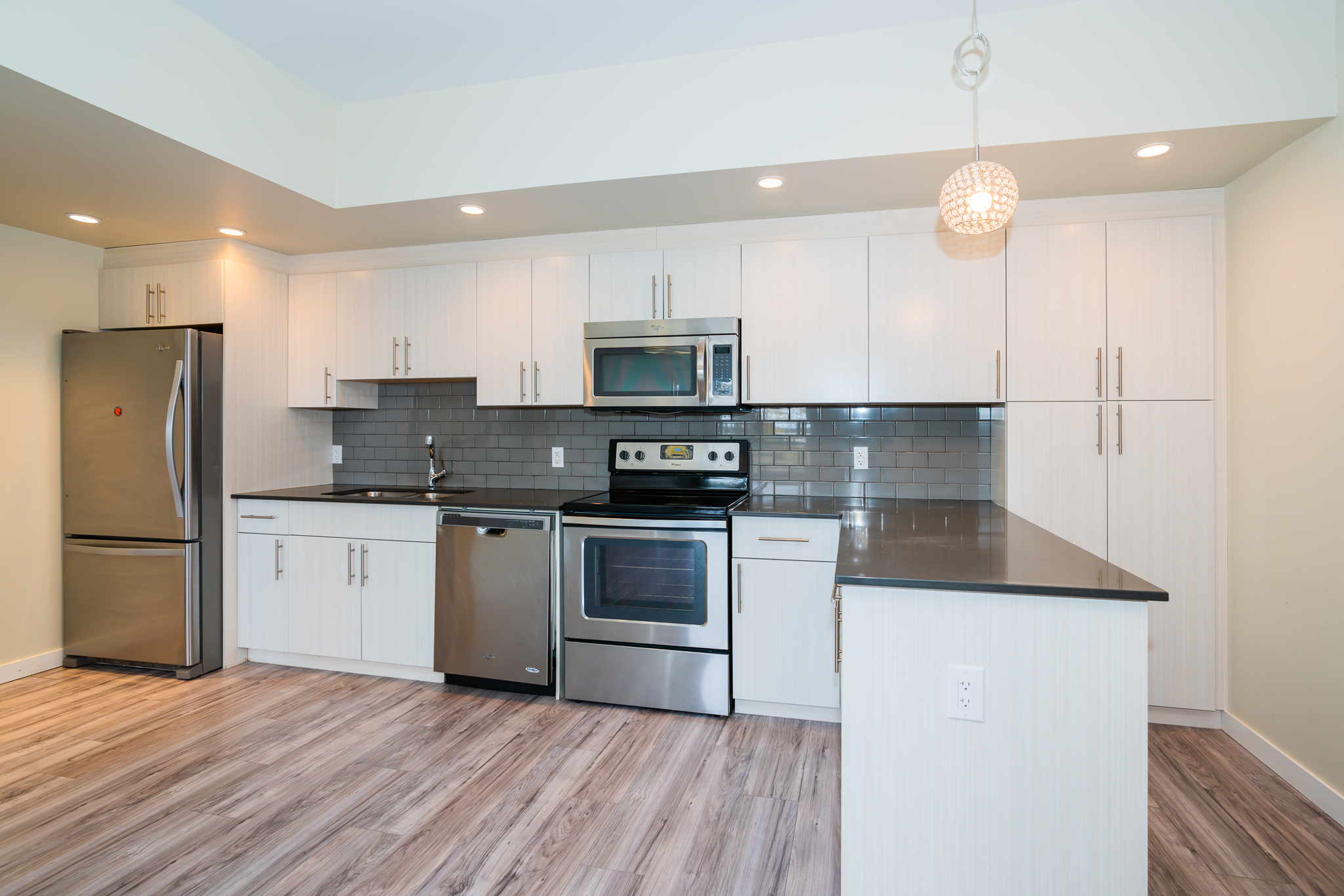 近 Superstore、曼大的精品联排单元。2016年建,1456平尺,3 卧房3全卫,1个特大连体车库+车位。室内大洗衣房。玻璃围栏双大阳台。2楼、3楼全新地板。石英石台面。升级灯具。 步行3分钟到公交站,步行4分钟到湖景公园;车行2分钟到 Superstore,车行3分钟到小学,车行5分钟到中学、FRC 高中及商业街区,车行6分钟到曼大。